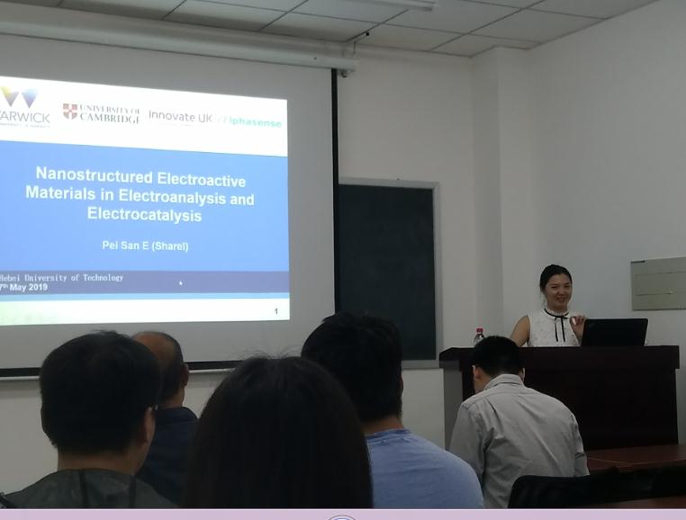 2019年5月7日上午9:30,应英国365上市公司的邀请,英国华威大学Pei San E博士和英国南安普顿大学孟令聪博士来我院做学术报告,报告题目分别为“Nanostructured Electroactive Materials in Electrocatalysis and Electroanalysis”和“Electrodeposition of Functional Eanomaterials”。报告会由我院副院长郑士建教授主持,来自各个学院的师生50余人一起聆听了两位博士的报告。