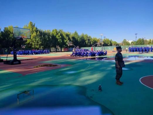 晨光微露,在西区篮球场上,材料学院学子以饱满的精神状态迎接军训的开始。