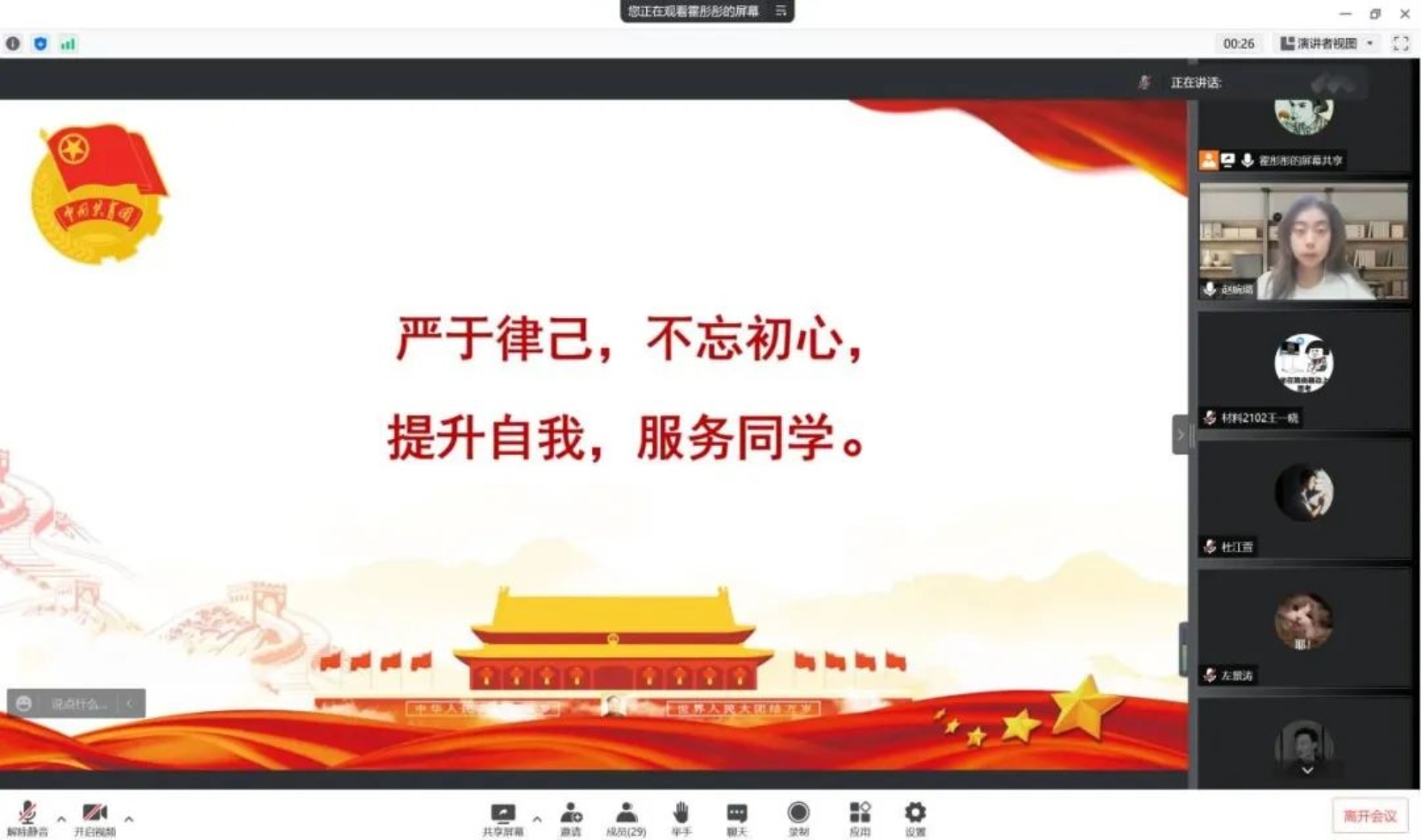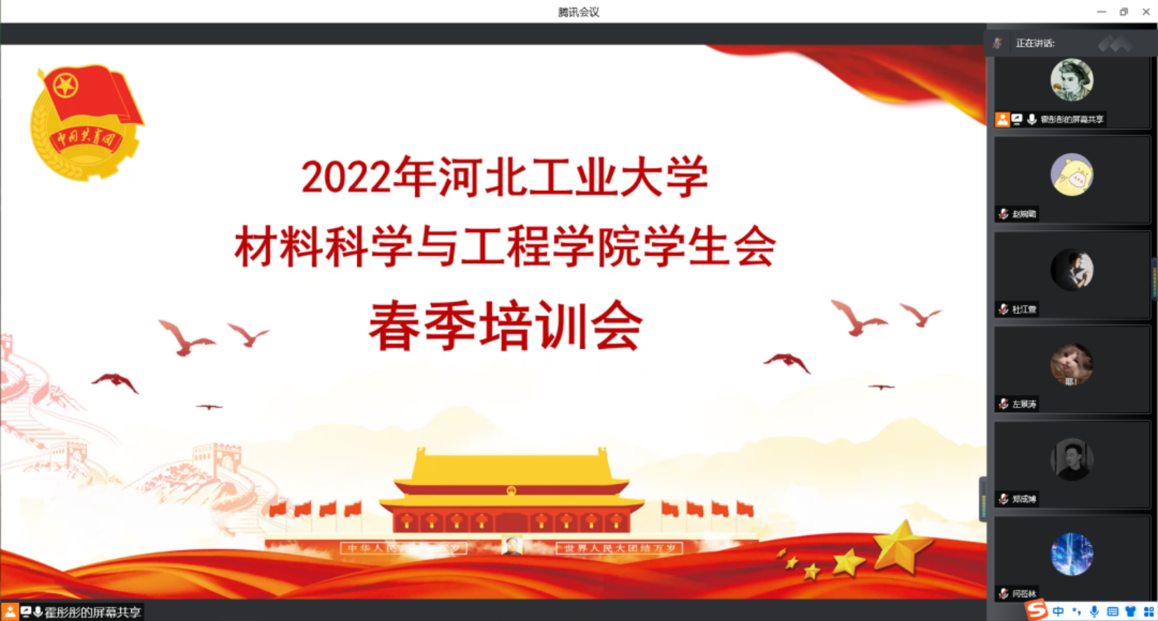 我院于4月20日晚20:00在腾讯会议开展了学生会春季培训会。参会成员有学生会主席及各部门部长、干事。
