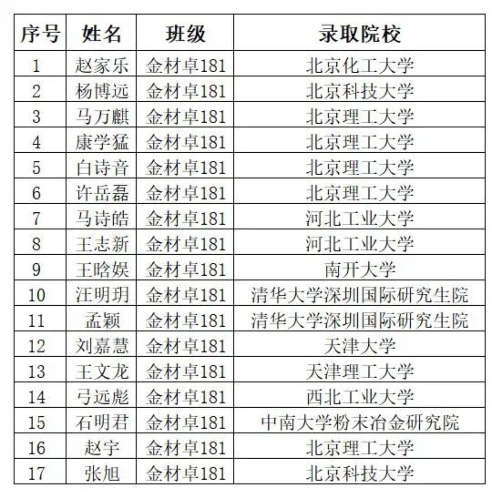 金属材料工程专业共计40人,确定升学17人,专业升学率42.50%。
