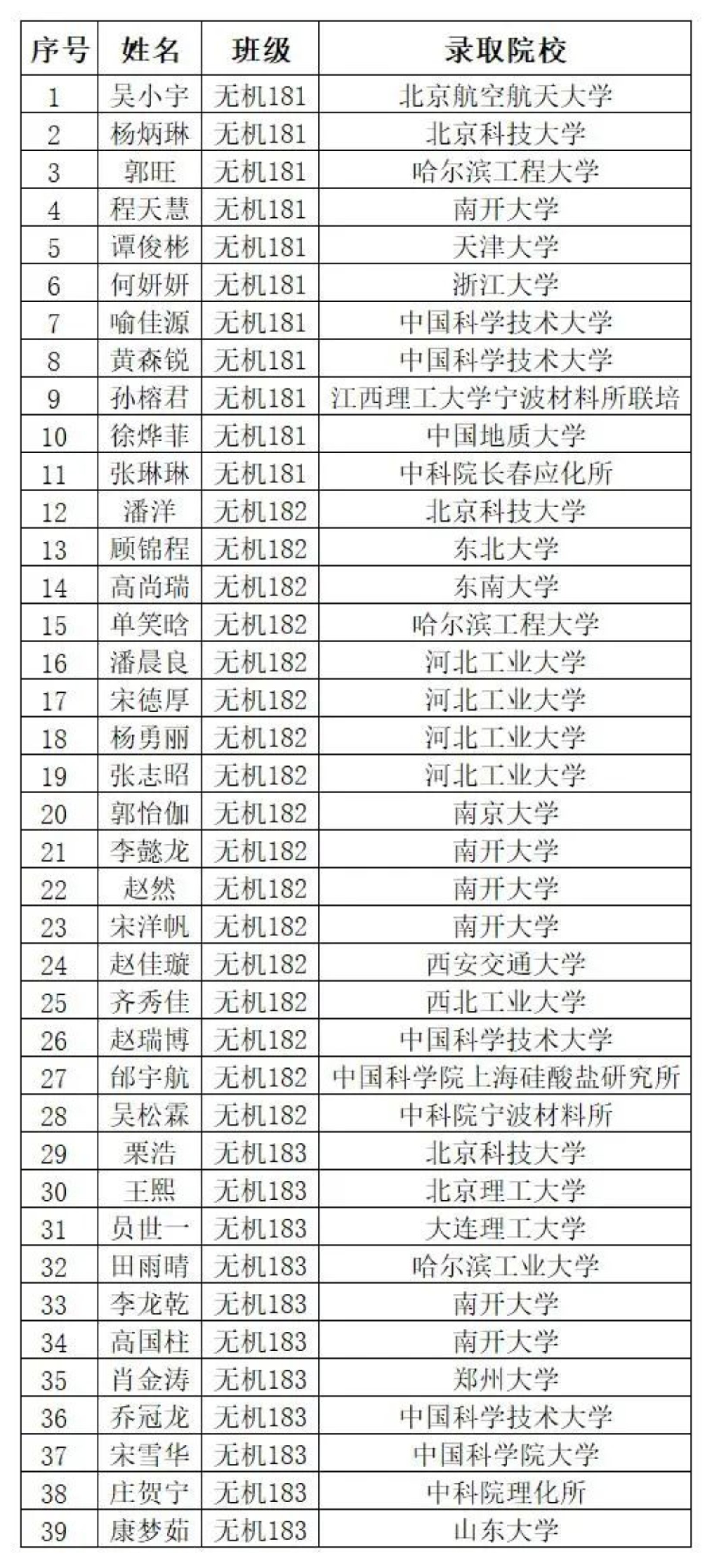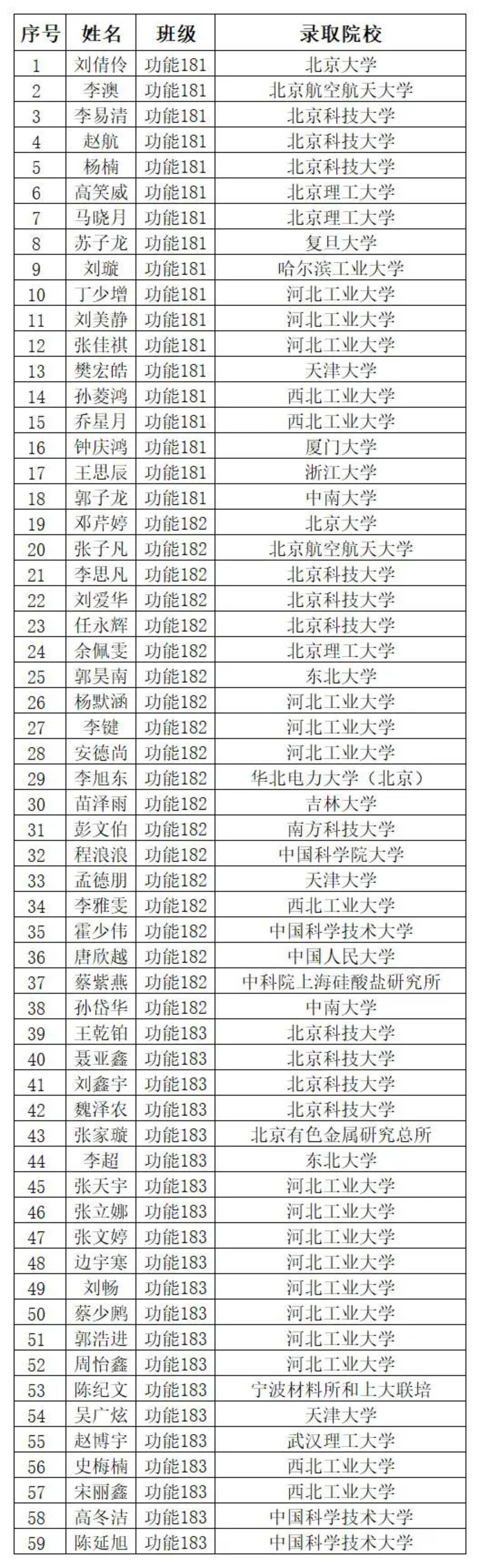 功能材料专业共计96人,确定升学59人,专业升学率61.46%。