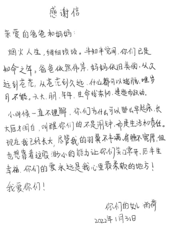 有为父母写下感谢信,表达对父母的爱和多年的感恩。