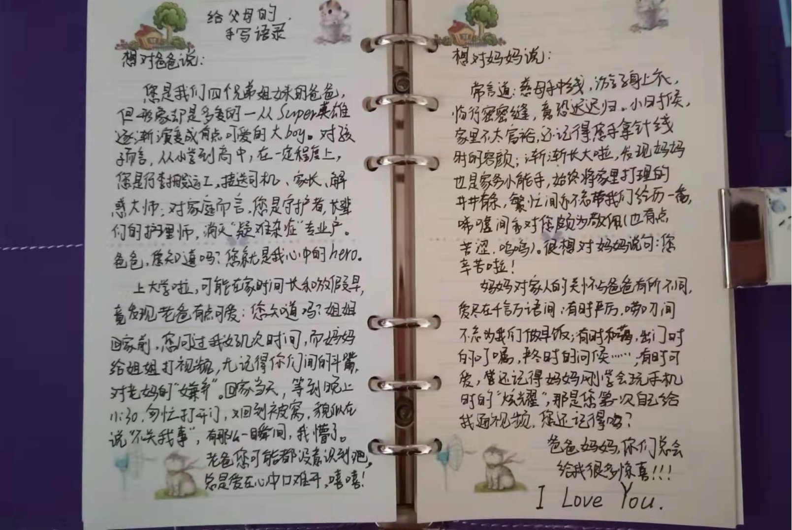 有为父母做家务,努力打扫爱我的家和我爱的家。有学生说:“好久没有回家,家里都是小时候的回忆和父母一起的影子”。