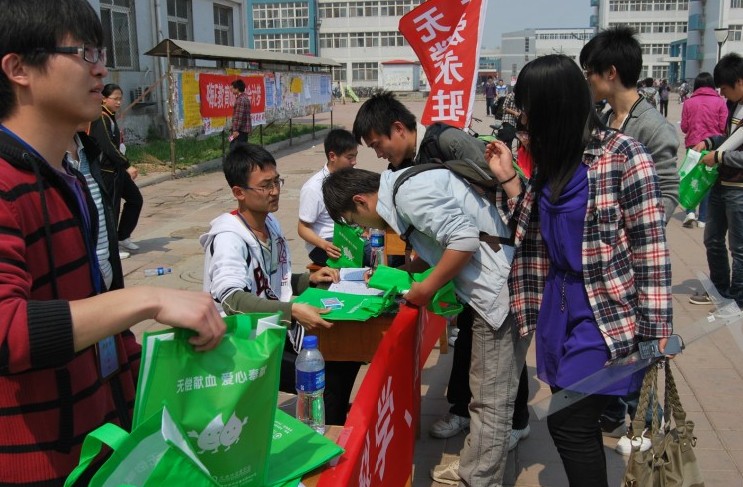 春日阳光照耀大地,微风吹来花香的气息, 4月13日上午11点,材料学院“无偿献血,挽救生命”活动在北辰校区西区食堂门口举行。活动还没有开始,就有同学陆续的向我们询问我们关于献血的各种问题,在工作人员一一解开了同学们心中的顾虑后,很多同学在献血名单上留下了自己的联系方式,并在“成分献血,科学合理”的条幅上签上了自己的决心与爱心。