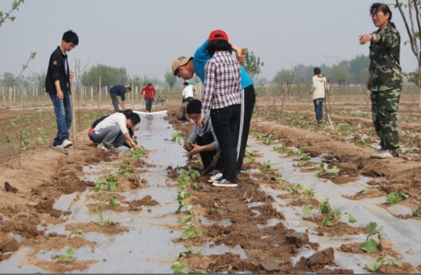 经过一个多小时的车程,同学们到达了太阳村,来到王阿姨的菜地。随即进行了简单的劳动分配,女同学捡树枝,男同学松土,大家积极配合,干劲十足,待准备工作完成之后,同学们接着帮王阿姨种茄子,拉薄膜、挖土、盖土,随着填土完成,此次学雷锋活动也圆满结束。