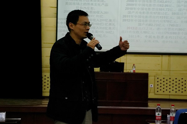 短短十几分钟的概述,已将全场带入了对意识形态的深深思考之中。接着,他又以当下国家的发展和个人的生活来介绍本次讲座的主题——美国意识形态渗透的形式。苑老师以诙谐幽默的语句由美国大片以点代面,切入到意识形态渗透的带来的种种危机,发人深思。分析过当代中国青年思想中存在的问题后,苑老师又从中华民族的传统美德——爱国这一话题呼吁大家认识到美国意识形态给我国带来的直接的和潜在的危害。在最后的结语中,苑老师饱含热情而又自豪地说出“我永远是一个中国人”,深深地打动了在场的每个人,雷鸣般的掌声在礼堂里久久不愿散去。活动的最后材料学院团委书记许海媚老师做了总结发言,希望能有机会继续邀请苑老师为大家带来精彩的讲座。