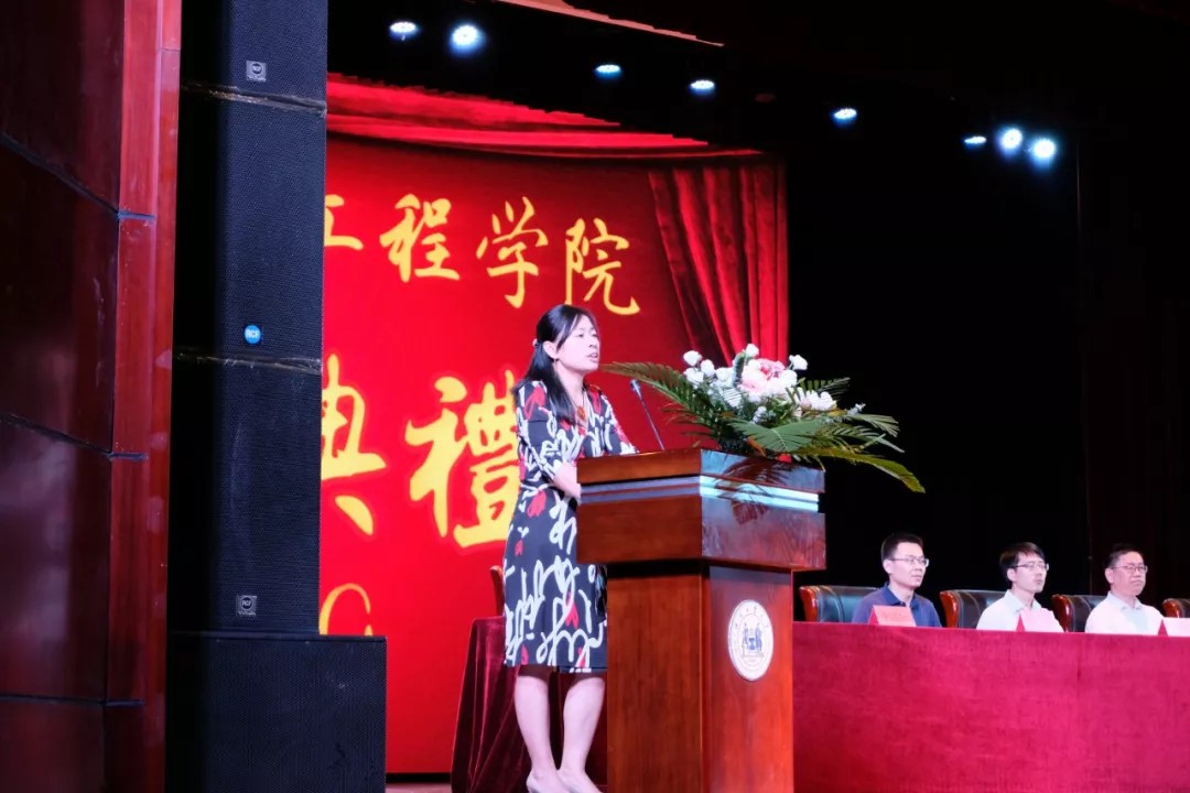 接着由教师代表材料物理系副主任郝秋艳教授致辞,她表示希望同学们坚定信念,不忘初心。毕业生需要尽快转换角色,适应人生的新阶段,积极担当社会责任。她深情地说道:“母校就是你们的家,希望你们成为材料学院的骄傲。母校师生期待你们捷报频传!”
