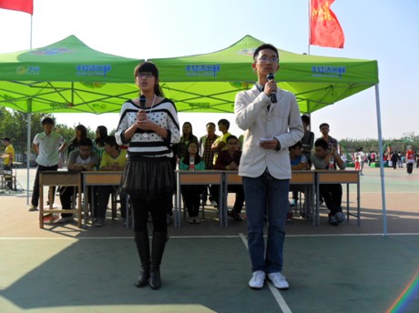 2013年10月11日下午两点整,材料学院2013级新生篮球赛开幕式在北辰校区篮球场举行,出席本次开幕式的嘉宾有材料学院13级辅导员耿微老师,12级学生会主席、13级学生会主席、材料学院篮球队队长和化工学院篮球队队长。