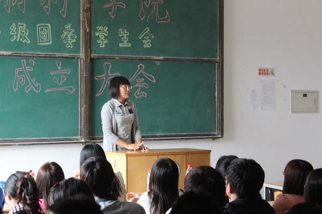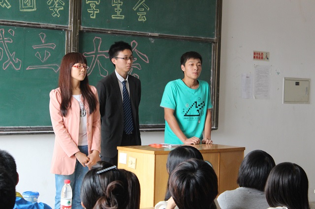 随后 2013 届学生会主席明伟舰进行了就职演讲,对新一届学生会做出了明确的工作计划和郑重的承诺。之后部长代表徐萌、部员代表赵云武分别进行了发言,希望在接下来的一年中学生会可以本着“服务同学”的态度,再创佳绩!