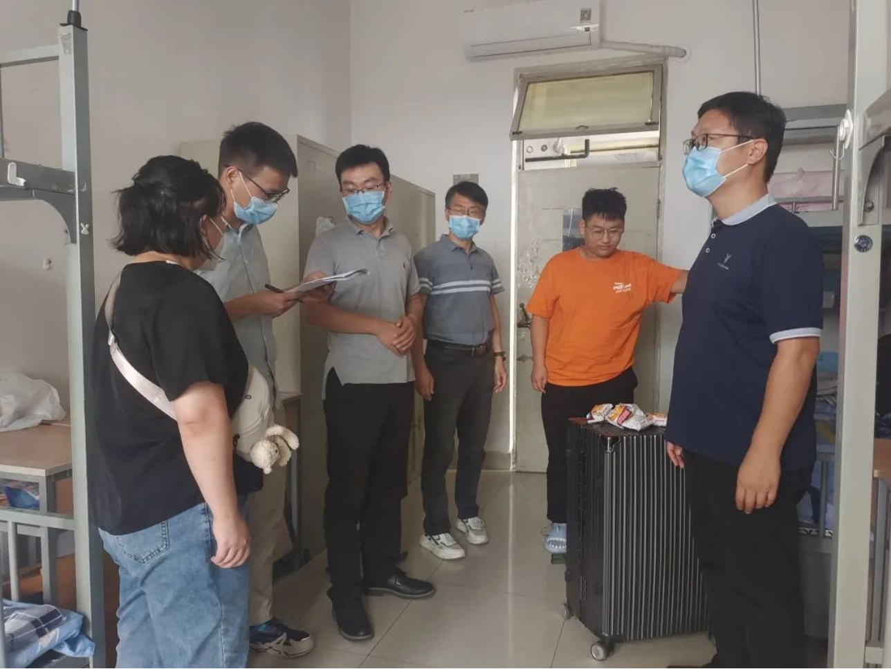 下午,英国365上市公司党委书记尹宗毅老师、院长郑士建老师、党委副书记兼副院长王建昆老师和辅导员李昱、王珺老师走进新生宿舍,关切2022级新生宿舍安顿情况和适应情况,并进行叮嘱和关心。