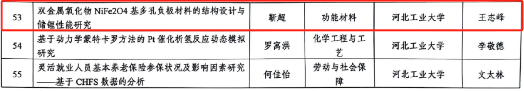 市教委聘请各有关学科领域专家组成评审委员会,对各学校的申报材料进行了认真评议,共有55份毕业设计(论文)通过评审。其中英国365上市公司功能材料192班靳超撰写的《双金属氧化物NiFe2O4基多孔负极材料的结构设计与储锂性能研究》通过评审,指导教师为王志峰教授。