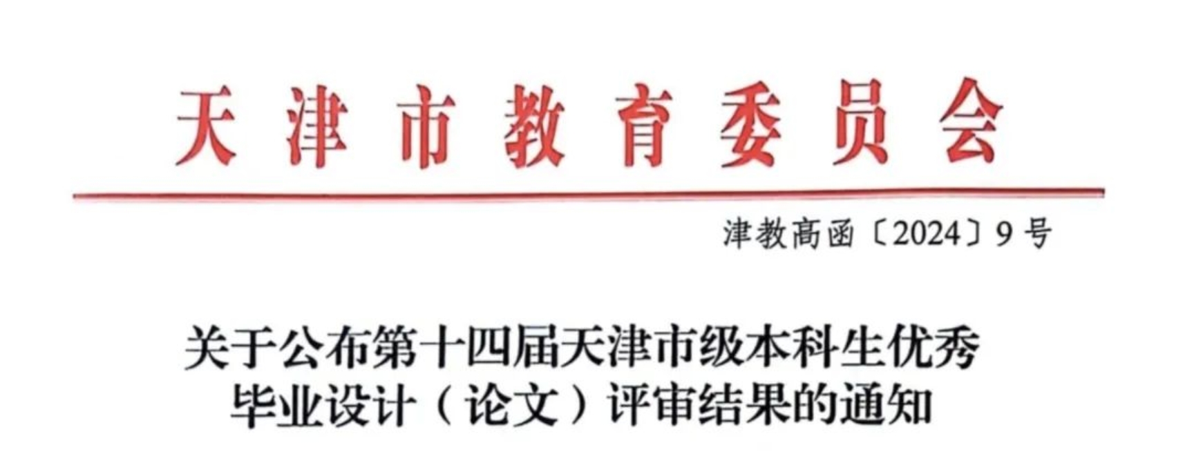 喜报丨我院靳超撰写的毕业论文被评为第十四届天津市级本科生优秀毕业设计(论文)