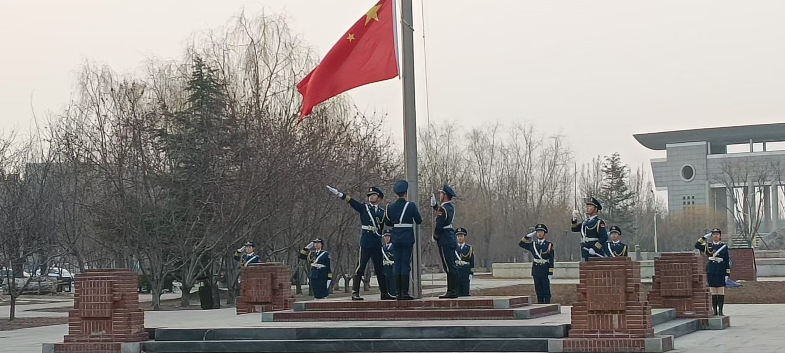 仪式伊始,护旗手迈着整齐有力的步伐出旗。在激昂的国歌声中,鲜艳的五星红旗缓缓升起,全体师生庄严肃立,行注目礼,同唱国歌,现场氛围庄重而热烈。