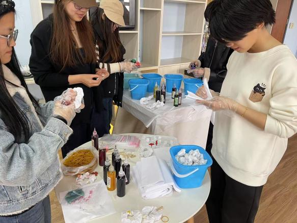 材料学院“艺彩随心,扎染生花”—晕染心灵调色活动板成功举办