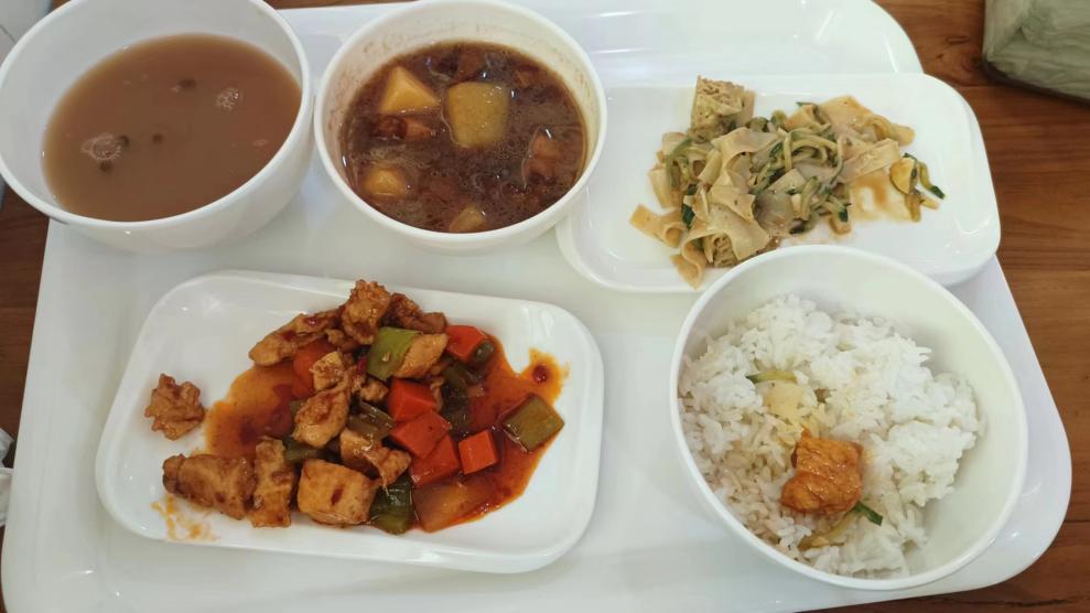 一周七天五天素食两天荤菜,每天三菜一汤,物美价廉,为企业生活提供良好的保障。