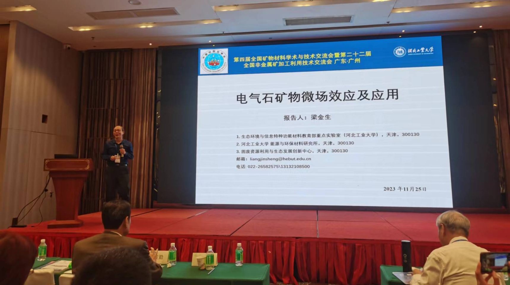 我校生态环境功能材料团队带头人、生态环境与信息特种功能材料教育部重点实验室(河北工业大学)主任梁金生研究员受邀做了题为《电气石微场效应及应用》的大会报告。报告深入剖析了电气石微场效应的形成机制,并着重探讨了电气石矿物的应用潜力和应用场景,为电气石矿物基础研究和应用研究提供了新思路。教育部重点实验室副主任董斌等老师与与会代表进行了广泛交流。
