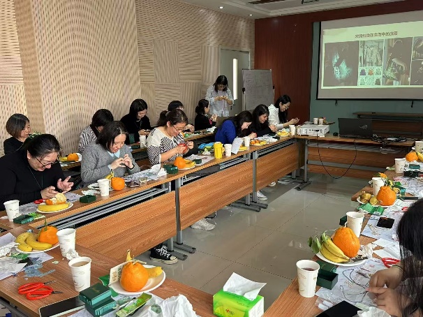 (2)指尖绽艺,礼献女神:宋锦色泽华丽,质地坚柔,被赋予中国“锦绣之冠”,其织造工艺列入国家级非物质文化遗产名录;把宋锦制作成女性佩戴的装饰品—项链,兼具美观和实用的功效。活动邀请了专业手工老师教授女教工代表们制作宋锦项链,不仅为女教工提供了展现自我、表达关爱的机会;同时也增强了女教工的个人自信和自我价值,鼓励她们为学院和学校的发展做出更大更好的贡献。