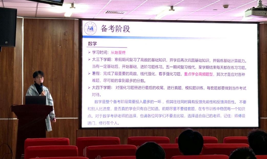 面对近年来考研的"内卷趋势",他建议低年级同学提前明确目标院校,利用寒暑假参加线上科研训练积累竞争力。考研不是熬时间,而是拼效率。他总结道,"找到自己的节奏,比盲目跟风更重要。"