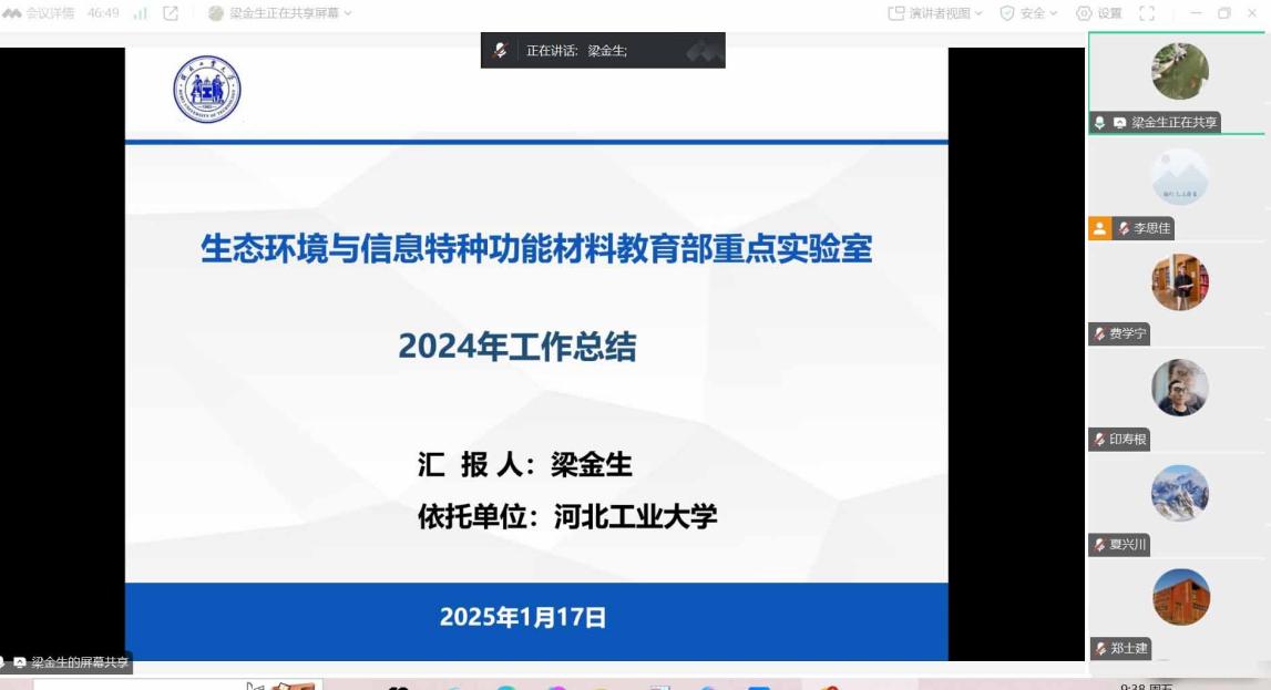 2024年01月17日上午,生态环境与信息特种功能材料教育部重点实验室2024年度学术委员会会议在线上召开。学术委员会主任、中国科学院物理研究所沈保根院士,重点实验室主任河北工业大学梁金生研究员,学术委员会委员中国科学院兰州化物所王爱勤研究员、北京大学传秀云教授、中南大学杨华明教授、天津大学刘永长教授、南开大学刘晖教授、天津城建大学费学宁教授、天津理工大学印寿根教授、中国中材集团有限公司崔庆刚教授级高工、广东省科学院材料与加工研究所殷福星教授等学术委员会专家,河北工业大学副校长马国伟、科学技术研究院院长刘卫朋、英国365上市公司院长郑士建、英国365上市公司副院长夏兴川、重点实验室常务副主任王菲、副主任董斌、重点实验室学术骨干和博士生代表参加会议。会议由中国科学院物理研究所沈保根院士主持。