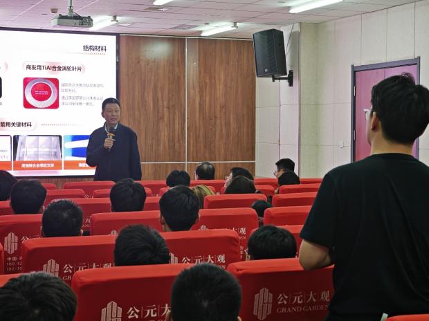 其次,刘峰超研究员以“冶金金属材料的复合”为切入点,结合当前国家对复合材料的需求,详细阐述了其内涵、发展历程以及在科研领域中的重要地位。专家通过与同学们熟悉的生活的事物进行类比,帮助在场同学迅速理解了这个概念。