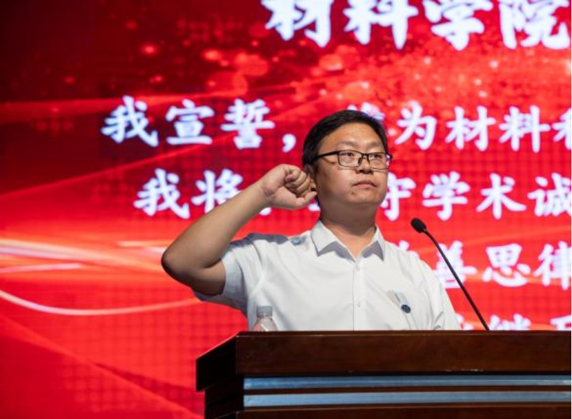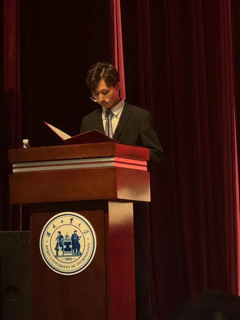 然后,学院师生代表依次进行发言。2024级博士生王志新作为新生说到,今年是他在河北工业大学材料学院的第七年,与河北工业大学材料学院的点点滴滴汇聚成了自己成长的经历,未来将以“鹏程万里今朝启航,壮志凌云正当其时!”的热情与全体新生共勉。