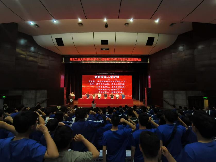 为热烈欢迎来自全国各地的2024级材料学子,学院于9月6日晚在河北工业大学北辰校区大学生活动中心世纪礼堂隆重举行2024级新生开学典礼暨迎新晚会。以最热情的方式迎接2024级本科生和研究生的到来!