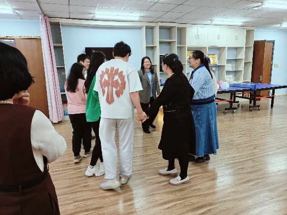 随后,为了让教师们在互动中放松身心、增强团队凝聚力,活动安排了团体小游戏环节。在王自华的带领下,老师们共同进行了一系列趣味十足的团体游戏。