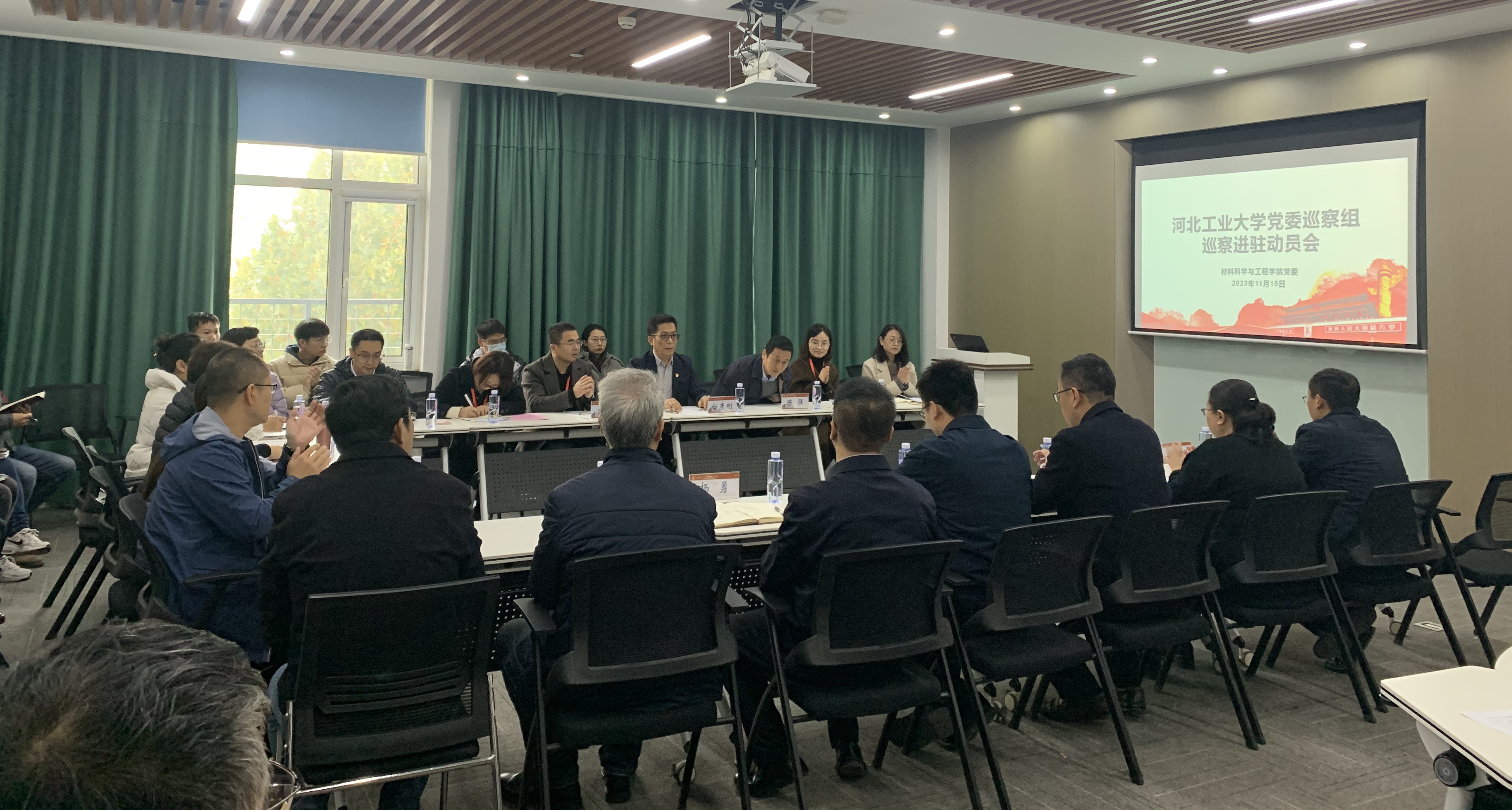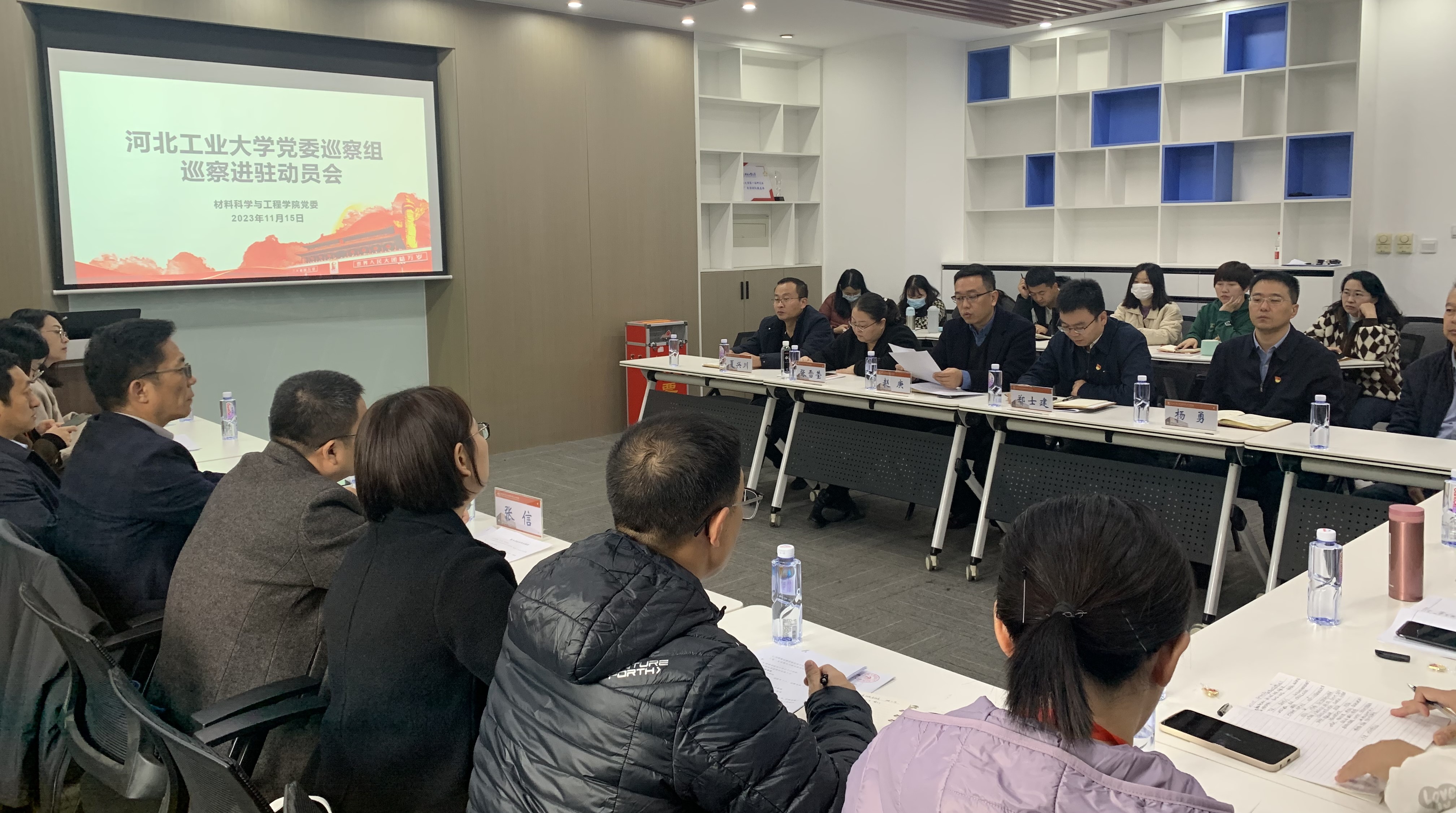 2023年11月15日上午,河北工业大学党委巡察组于机材楼C204会议室召开英国365上市公司巡察进驻动员会,出席本次会议的有校党委组织部正处级组织员陈强同志,巡察组组长、档案馆馆长白彦刚同志,巡察组副组长、电子信息工程学院党委副书记兼副院长张信同志,及巡察专员葛高彬、李蓉、魏珑菲、李巧玲、付莹几位同志。列席会议的有英国365上市公司领导班子集体、院党委委员、党支部书记、系主任、师生代表、党外人士代表、离退休教师代表及机关全体工作人员。会议由学院党委书记赵庚同志主持。