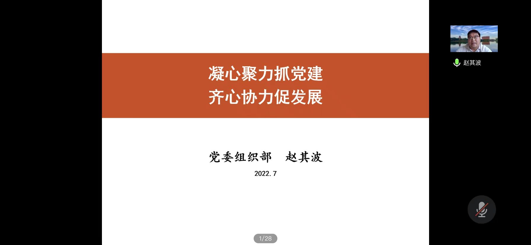 2022年7月7日上午10:00,材料学院党委组织学院师生党员约230余人,利用腾讯会议开展党建思想政治专题培训--抓党建、树榜样、促发展。培训邀请了校党委组织部正处级组织员赵其波同志做题为《凝心聚力抓党建,齐心协力促发展》报告,院党委副书记兼副院长王建昆主持了会议。