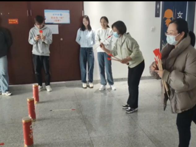 第一环节为游戏大观园活动。活动由快乐之巅(乒乓球颠球)、掷趣相投(沙包掷准)、鸿运当“投”(投壶)、小李飞镖(扔飞镖)以及毽舞飞扬(踢毽子)五个环节组成。参与活动的老师首先需要在机材楼514门口领取卡片并填写自己的号码,随后前往卡片上的活动所在地参加活动,完成活动后即可获得盖章,集齐5个章后,即可前往机材楼514领取精美伴手礼一份并获得抽奖资格。参与活动的教师各显其能,场面十分欢快和谐。
