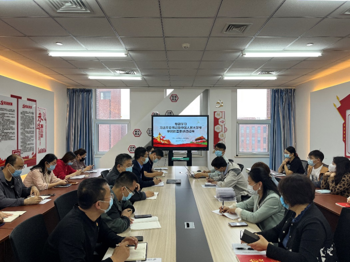 会上,尹书记组织与会师生逐字逐句研读习近平在中国人民大学考察时强调坚持党的领导传承红色基因扎根中国大地走出一条建设中国特色世界一流大学新路》,学院党委委员、师生党支部书记等十余位参会人员先后做了交流发言。