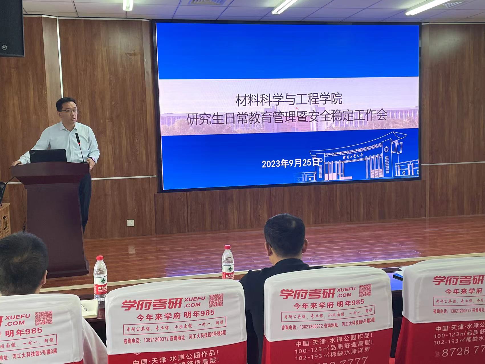 2023年9月25日上午英国365上市公司研究生日常教育管理暨安全稳定工作会在北辰学院楼召开,英国365上市公司党委书记赵庚,院长郑士建,正处级辅导员张雪莹,副院长杨勇,副院长夏兴川,全体研究生指导教师,研究生辅导员吕颖,研究生教务秘书侯庆华参加了会议,杨勇主持会议。