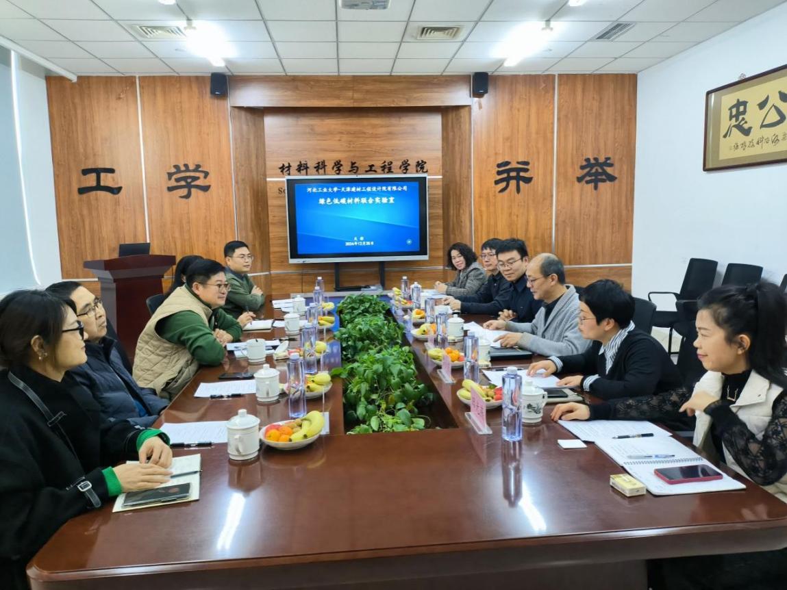 随后双方就材料研发、项目合作和未来科研发展等议题进行了广泛交流和深入讨论。会后,与会人员赴天津建材工程设计院有限公司举行了河北工业大学实践基地揭牌仪式。