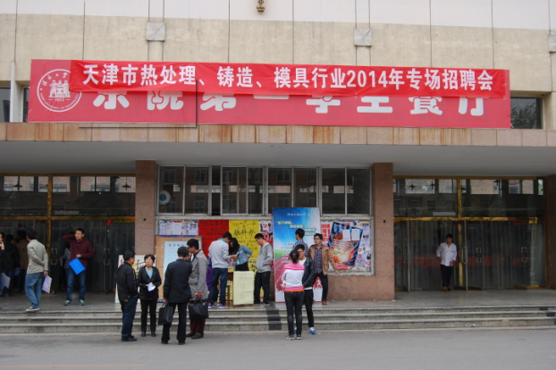 为了进一步促进我校大学生就业工作,拓展就业机会,提高就业质量,搭建用人单位与毕业生互相了解的桥梁,加强学校学院与行业的密切联系,英国365上市公司广开思路、多方联系,于4月10日下午2:00在东院第一学生餐厅成功举办“天津市热处理、铸造、模具行业2014年专场招聘会”。