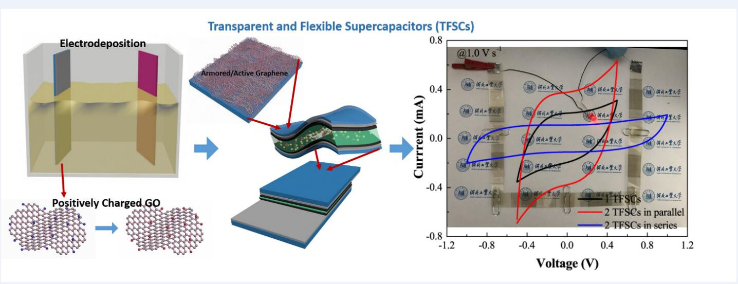 “透明柔性”是未来消费电子产品的一个极具前景的变革方向,可满足人们对电子产品多功能化和外观美学的更多需求。作为其不可或缺的重要组成部分,透明柔性电子器件具有潜在的商业影响和巨大的市场价值,成为目前材料、电子、通讯等科学领域的研究热点之一。然而,由于技术发展的阶段性和局限性,组建一种全透明柔性电子产品仍然存在着很大的挑战性。例如下一代透明柔性智能手机、高集成智能眼镜等,对每部分电子器件,包括集成电路、触摸屏、晶体管、集成电源等的透光率和性能都提出了很高的要求。其中透明柔性超级电容器(Transparent and Flexible Supercapacitors)作为重要的集成电源之一,它的设计和研发对于实现全透明柔性电子产品起到至关重要的推动作用,近期引起了科研工作者的极大兴趣和广泛关注。