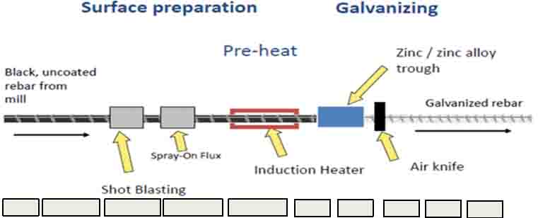 我校英国365上市公司曹晓明教授带领的表面工程组团队,针对长材(钢、角、槽等)传统吹镀工艺存在着污染高、效率低、成本高、镀层耐蚀性差等问题,基于一种创新工艺(图1,专利已受理)研究出一种长材卧式溢流环保热镀工艺及成套装备。新技术变酸洗除锈为机械除锈,除锈后的工件在惰性气体保护下快速加热、快速施镀。生产过程中不用助镀剂,而且密闭热镀,没有锌尘产生以及其它废气、废液排放,在整个生产过程只用电和水,彻底开创了长材热镀锌零排放的新局面。依托河北工业大学表面工程组的该技术成果,已经在河北霸州高凡科技有限公司建立年产量25000吨的长材热镀示范线,产品已经投放市场。热镀长材涉及全国每年1000万吨的消费市场,产值400亿,利润50亿。该示范线的成功建立运营对整个吹镀行业的升级,开创新型产业群意义重大,这也是创新创业的一个实施典范。目前河北省工信厅已经批准该公司与河北工业大学为河北省特种装备共建研发中心。图2 是示范基地的长材热浸镀生产线。