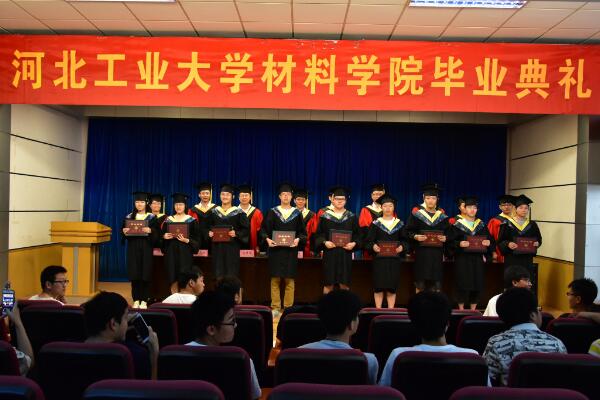 毕业典礼由奏响《义勇军进行曲》拉开序幕,在庄重的国歌中,毕业生们为自己即将成长为一名优秀的国家栋梁而自豪。典礼正式开始,首先表彰2017届材料学院优秀毕业生代表——“材料之星”的颁奖环节,十名在科研、社会实践、学习、思想品质等各个领域表现优异的毕业生代表,被赋予了“材料之星”的称号,现场师生由衷的为这些获此殊荣的毕业生代表高兴,同时,这些毕业生的优异事迹也感染到每一个人。