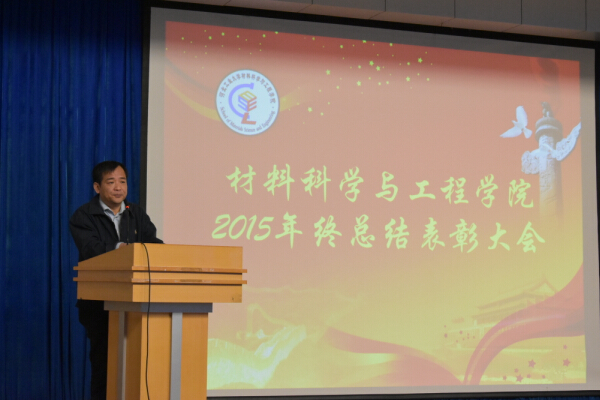 首先,从一段温馨的视频中,回顾了2015年学院的各方面工作。随后,唐成春院长紧密结合全年绩效考核目标,对材料学院2015年的工作进行了全面总结:教育教学稳步推进,人才培养质量有新提高;科研总量和质量再创新高,高水平论文数量质量大幅提升,一区论文数量实现高增长,进入ESI前1%的高被引论文取得突破;学科平台成绩突出,新建国家工信部与河北省政府共建的“固废资源利用与生态发展创新中心”,发起成立了京津冀三地工大材料学科联盟,30名青年骨干教师参与学术论坛;人才队伍建设成效显著,一大批35岁左右人才崭露头角。党建和思想政治工作扎实稳健,实施了凝心聚智工程,强化师德师风建设,加强安全稳定工作,组织了安全生产大检查大排查大整治工作,全院保持和谐稳定。