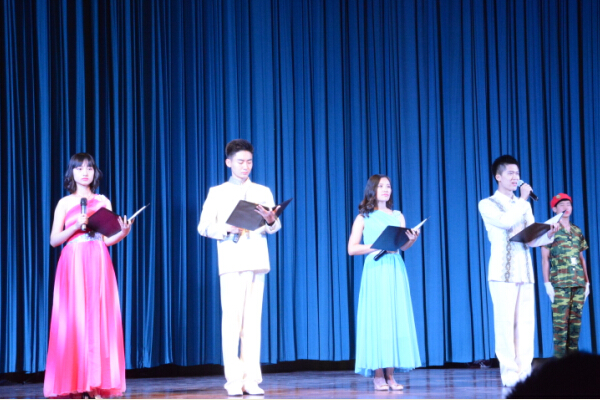 此次比赛共有18个学院代表队参赛。一句句高亢嘹亮的朗诵掀起比赛的一轮轮高潮,一首首耳熟能详的红歌在礼堂中回荡激昂。在比赛中我院第17个出场。首先,由四位朗诵表演者同学用饱含情感、充满激情的语调让思绪飞到神奇的西藏,联想到世代生活于偏僻而古老村庄的藏族同胞那艰难的生活,联想到“从此山不再高路不再漫长”的藏家儿女深深的感慨和欣慰,联想到为“各族儿女欢聚一堂”而喜极而泣的欢欣和鼓舞。伴着歌颂“汉藏一家”的中华民族情怀,两位身穿藏族节日服装的演员缓缓步入舞台,身形优雅态度神圣;接着略带沙哑的音质特征和独到又激情的音节朗诵,配合一名身着军装的演员用充满力量和阳刚的伴舞,用声音的情感和动作的爆发力一起赞美“这是一条神奇的天路”。