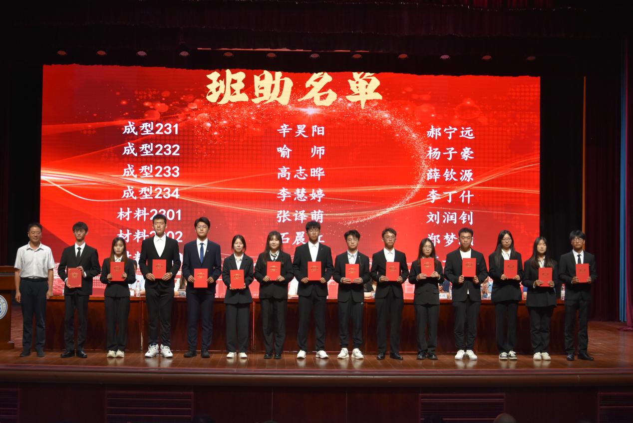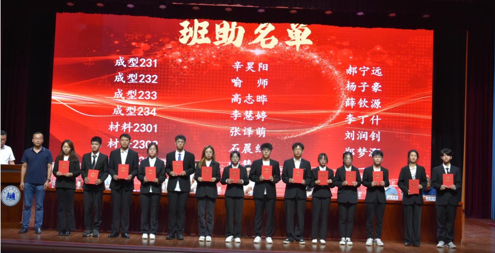 典礼第二项,由夏兴川为成型231-成型234班和材料2301-材料2303班班级助理颁发聘书;杨勇为材料2304-材料2010班班级助理颁发聘书;郑士建为2023级本科班导师颁发聘书。既是一种荣誉,又是一份责任。院领导对班级助理和班导师寄语,希望他们能够发挥好学生成长成才的纽带作用,助力学生成长为一名优秀的河工学子。