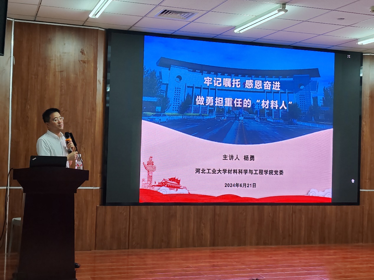 杨勇从强化责任意识,筑牢思想防线;立足“工学并举”,做新时代“材料人”;坚持“知行合一”,做合格学生党员三方面为同学们展开讲授。