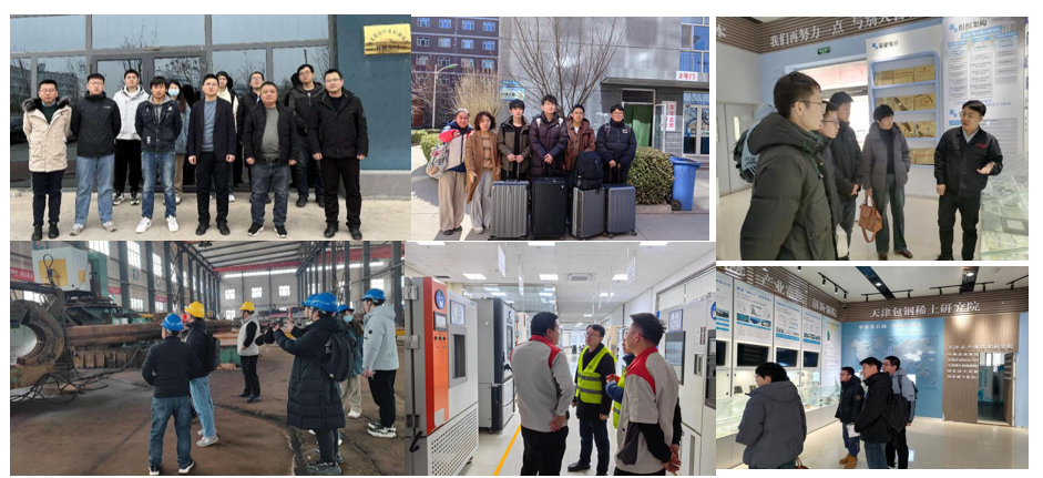 金属材料工程系教师王新、杨薇、苗斌、沈春光、姚凯、先进材料分析中心教师赵彦明和无机非金属材料工程系教师刘何燕等护送多名毕业设计同学,分别来到石家庄河北冠靶科技有限公司、保定曼德电气、沧州隆泰迪管道科技有限公司和天津包钢稀土研究院有限公司等企业。师生们受到公司的热情接待,通过座谈与企业导师就课题基本情况、实验开展计划、就餐和住宿安排以及工作条件等进行了充分交流,随后一同参观了企业生产现场,对毕设课题要解决的问题进行进一步深入探讨。