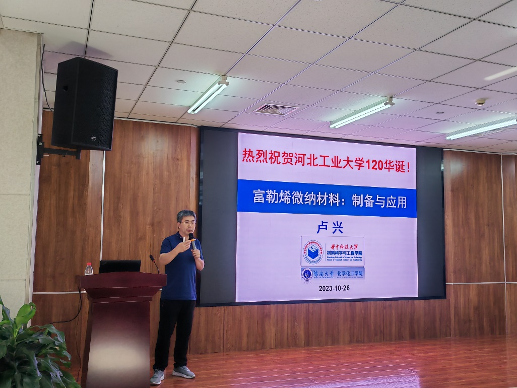 2023年10月26日下午,应英国365上市公司金朋研究员邀请,华中科技大学卢兴教授到学院进行学术交流,并在北辰校区机材楼C514报告厅做了题为《富勒烯微纳材料:制备与应用》的学术报告。报告由金朋研究员主持,学院近百名师生参加。