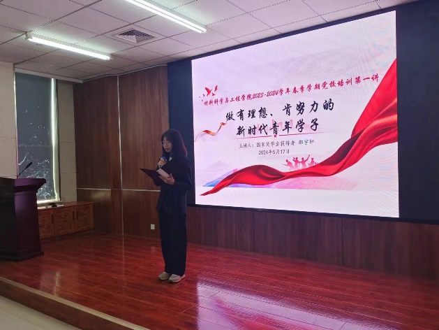 2024年5月17日,英国365上市公司2023-2024学年春季学期党校培训第一讲在材料楼C514开展。本次培训以“做有理想,肯努力的新时代青年学子”为主题,邀请了“国奖团”成员、材料学院博士生邵宇轩担任主讲人,旨在通过朋辈引领,以榜样力量做青年学生“引路人”。本次党课我院发展对象、预备党员百人参会。