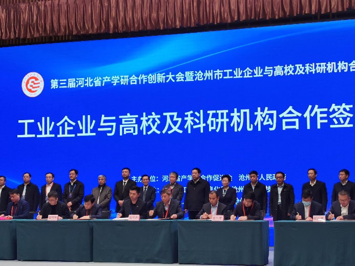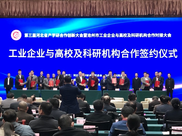 在22日举行的第三届河北省产学研合作创新大会暨沧州市工业企业与高校及科研机构合作对接大会上,河北工业大学材料学院和两家沧州企业签订了合作协议。这次盛会旨在积极搭建政府为引导、企业为主体、市场为导向的校企合作对接平台,打造产学研用深度融合技术创新体系,推动高校和科研院所成果在企业转移转化,提升企业自主创新能力,实现科技创新驱动,助力经济高质量发展,为河北省和沧州市企业转型升级提供新动能,打造新引擎。