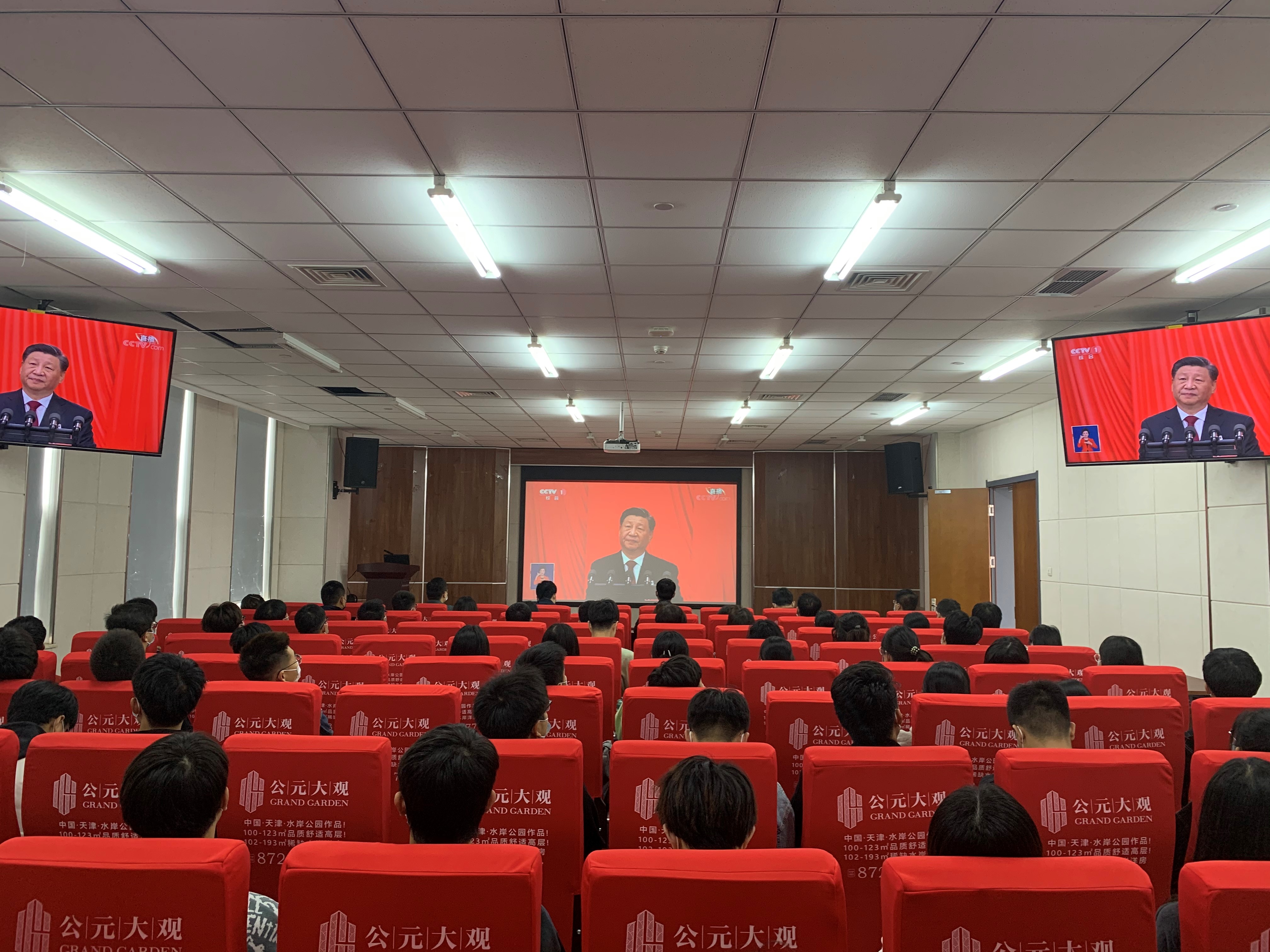 材料学院党委精心部署,在红桥和北辰校区共设置4个会议室,组织院党委理论学习中心组、部分党员师生代表共同集中学习收看,其余师生自行收看。