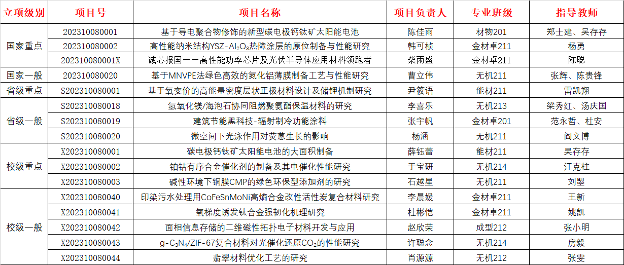 2023年6月20日,校团委公布了我校“喜迎百廿校庆,科创筑梦未来”2023年大学生创新创业训练计划项目立项结果。其中,我院2023年大学生创新创业训练计划项目成功立项16项,分别是国家级重点项目3项,国家级一般项目1项,省级重点项目1项,省级一般项目3项,校级重点项目3项,校级一般项目5项,详细结果见《2023年河北工业大学大学生创新创业训练计划项目立项清单》。