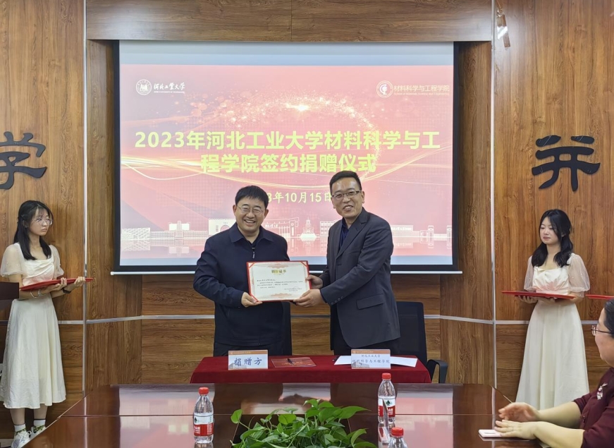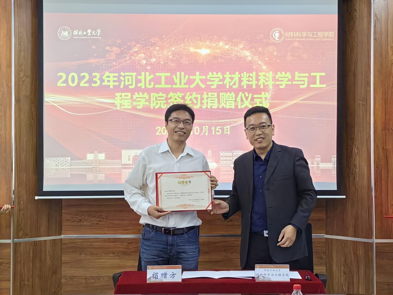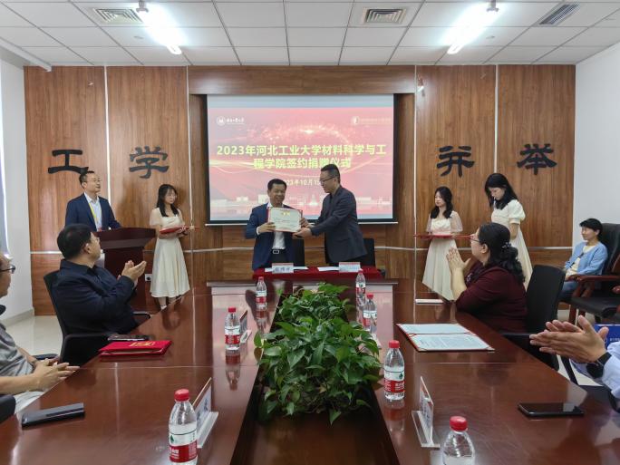 河北工业大学建校120周年之际,学院于10月15日在机材楼525举行2023年英国365上市公司捐赠仪式,凝聚校友力量,助力百廿校庆。出席捐赠仪式的嘉宾为校纪委监察处处长张宏标,材料学院党委书记赵庚、正处级辅导员张雪莹、副院长夏兴川以及学院教师代表。