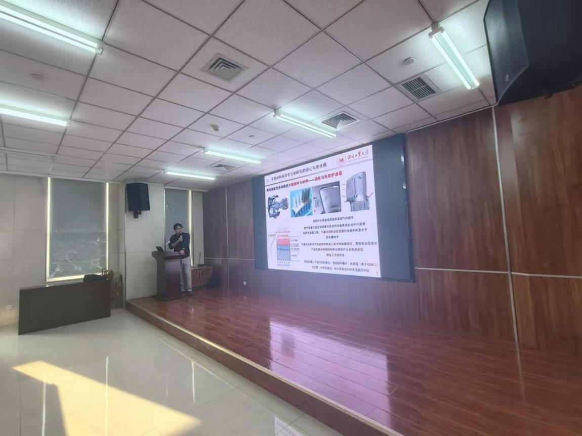 邵宇轩从作为一名新时代工科学子的初心与责任感、开展材料科学学习与研究的初心和责任感、知行合一 投身实践三个方面开展讲授。