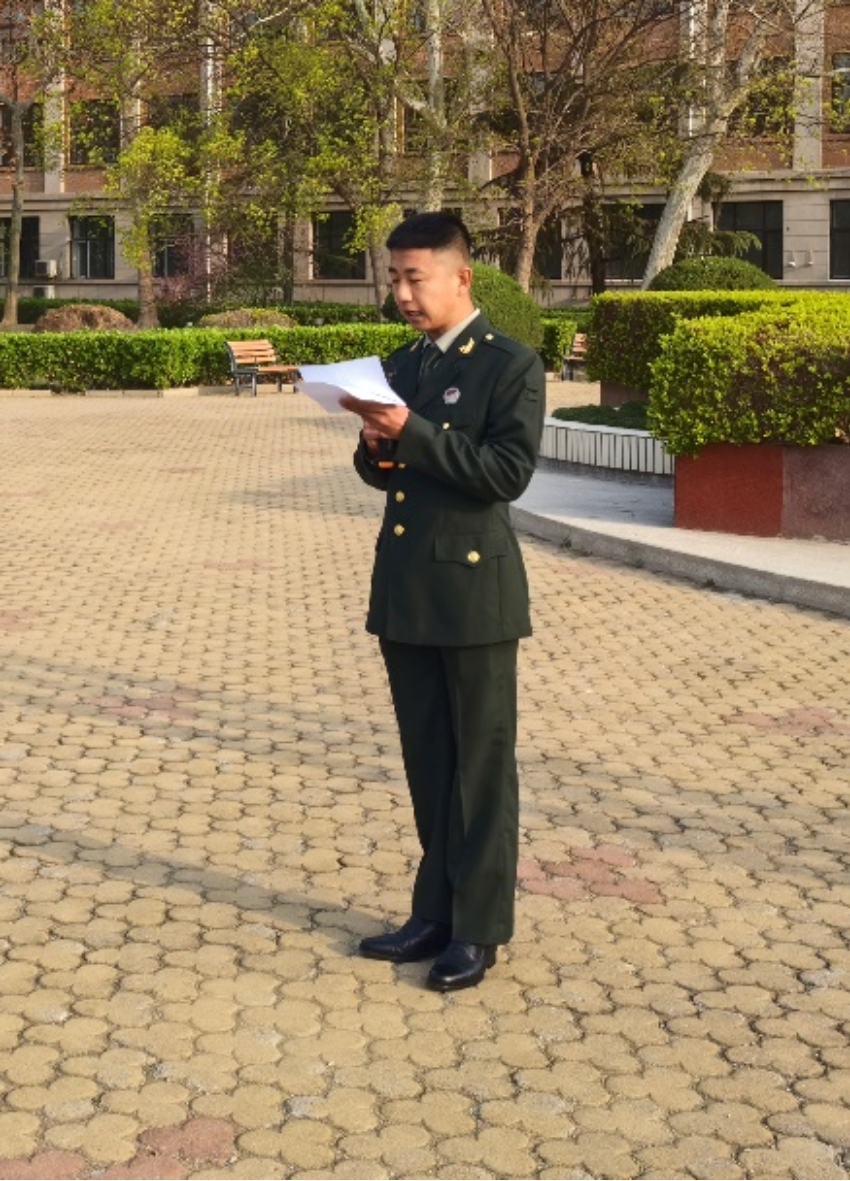 23级硕士研究生、退伍大学生罗文鹏作为学生代表发言。他说到两年的军旅生涯,他锻炼了坚强的意志和不怕困难的品质,学会了团结协作、顽强拼搏,培养了坚持不懈的毅力和勇往直前的精神。退伍后,他选择了继续深造,带着这份使命感回到校园, 用实际行动践行社会主义核心价值观,传递正能量,为社会做出贡献。他号召同学们,在当下应该好好学习,脚踏实地付出努力,要有“天生我材必有用”的坚定自信。要有“厚积薄发,励志笃行”的沉稳步伐。不断激发自己的潜能与活力,为建设美好的祖国贡献自己的力量。